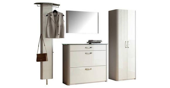 Mit dieser 4-teiligen MODERANO Garderobe in Weiß und Alufarben bringen Sie Ihre Vorliebe für modisches Design zum Ausdruck. Das Ensemble zeichnet sich durch das Zusammenspiel von auffälligen Komponenten aus Aluminium und Glasfronten aus. Dadurch entsteht unkonventionelle Modernität in Ihrem Eingangsbereich und Sie setzen Ihr persönliches Faible stilvoll um.